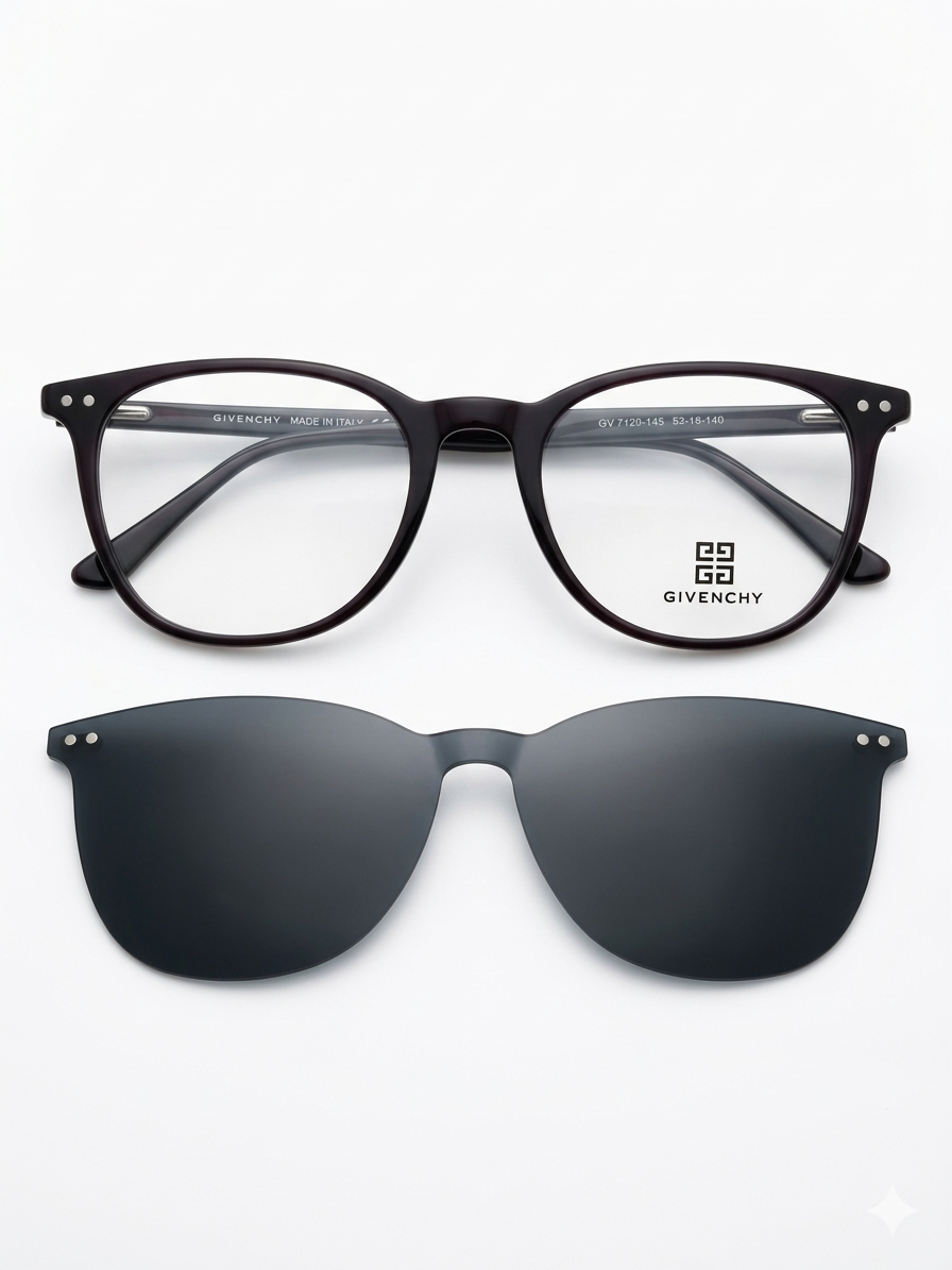 Switch instantly from clear vision to sun protection with clip-on glasses. This smart design combines prescription frames with a detachable sun clip, giving you comfort, style, and convenience in one.
