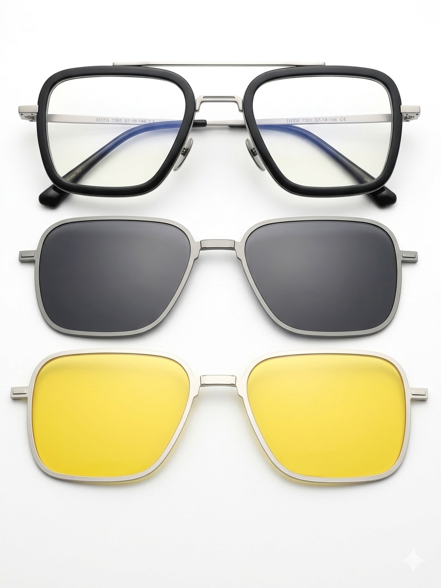 Switch instantly from clear vision to sun protection with clip-on glasses. This smart design combines prescription frames with a detachable sun clip, giving you comfort, style, and convenience in one.